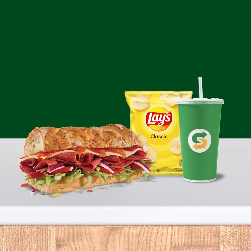 Tender turkey breast, oven-roasted to perfection. With genoa salami, spicy pepperoni, melted provolone and our tangy SUBWAY Vinaigrette that makes it a sandwich like no other. Served with choice of side and a drink.